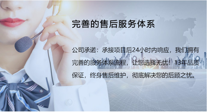 公司擁有完善的服務(wù)體系流程,讓您選擇無 憂!13年品質(zhì)保證,終身維護(hù),徹底解決您 的后顧之憂